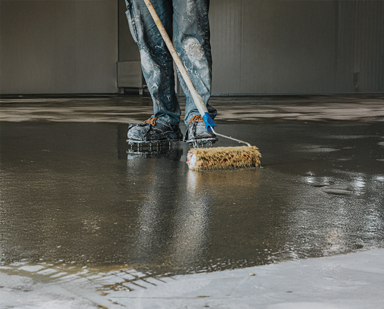 Concrete Standards: The surface should be cleaned with pressurized water and freed from oil, grease, dirt, mortar particles and dust. Concrete surfaces should be prepared to obtain an open porous surface by removing cement grout using abrasive equipment.It should also be completely cleaned from mold release agents, cement residues, shavings, loose particles and uncured membranes. The grout layer on the surface must be removed. (Shot-Blast, Rota Tiger etc.) If the surface is too shiny, it should be roughened with milling or sandblasting. Concrete cracks should be cut in a V shape, cleaned and false joints should be cleaned.