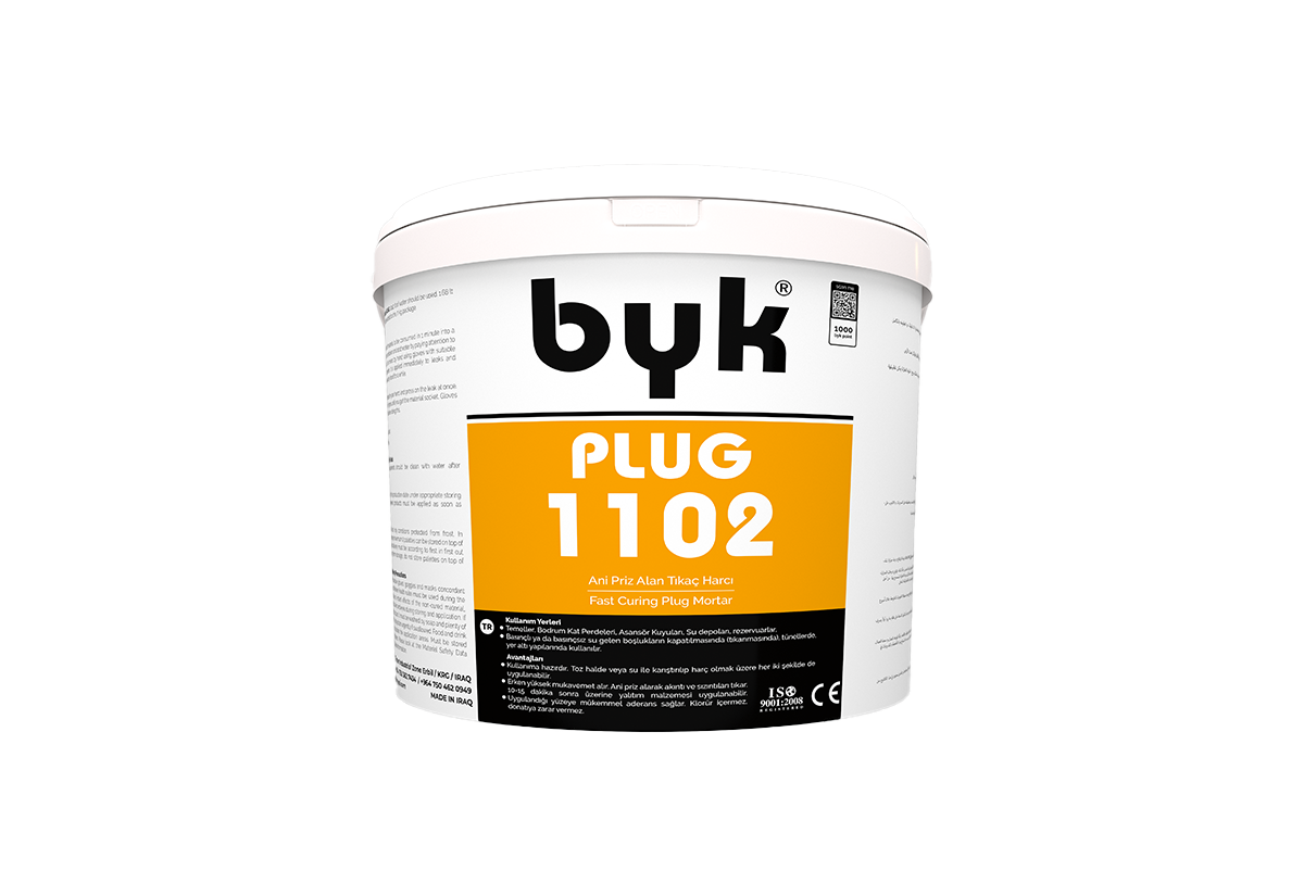 BYK 1102 PLUG is a mortar containing special mineral fillers and binders, which can clog active water leaks suddenly, can be used within 1-2 minutes, completes full drying within 3-4 minutes, is used for insulation and repair purposes.