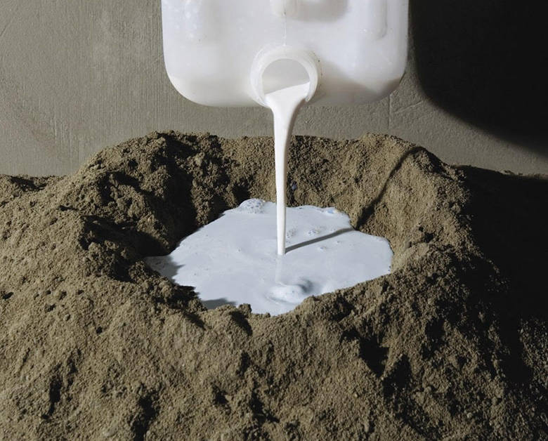 In suitable granulation, at least 350 kg of cement is mixed into 1 m3 of washed river sand The liquid mixture prepared by adding 110 lt water in the 5 kg BYK 1103 SBR is added to the powder mixture prepared beforehand and brought to the proper consistency of the gauge.